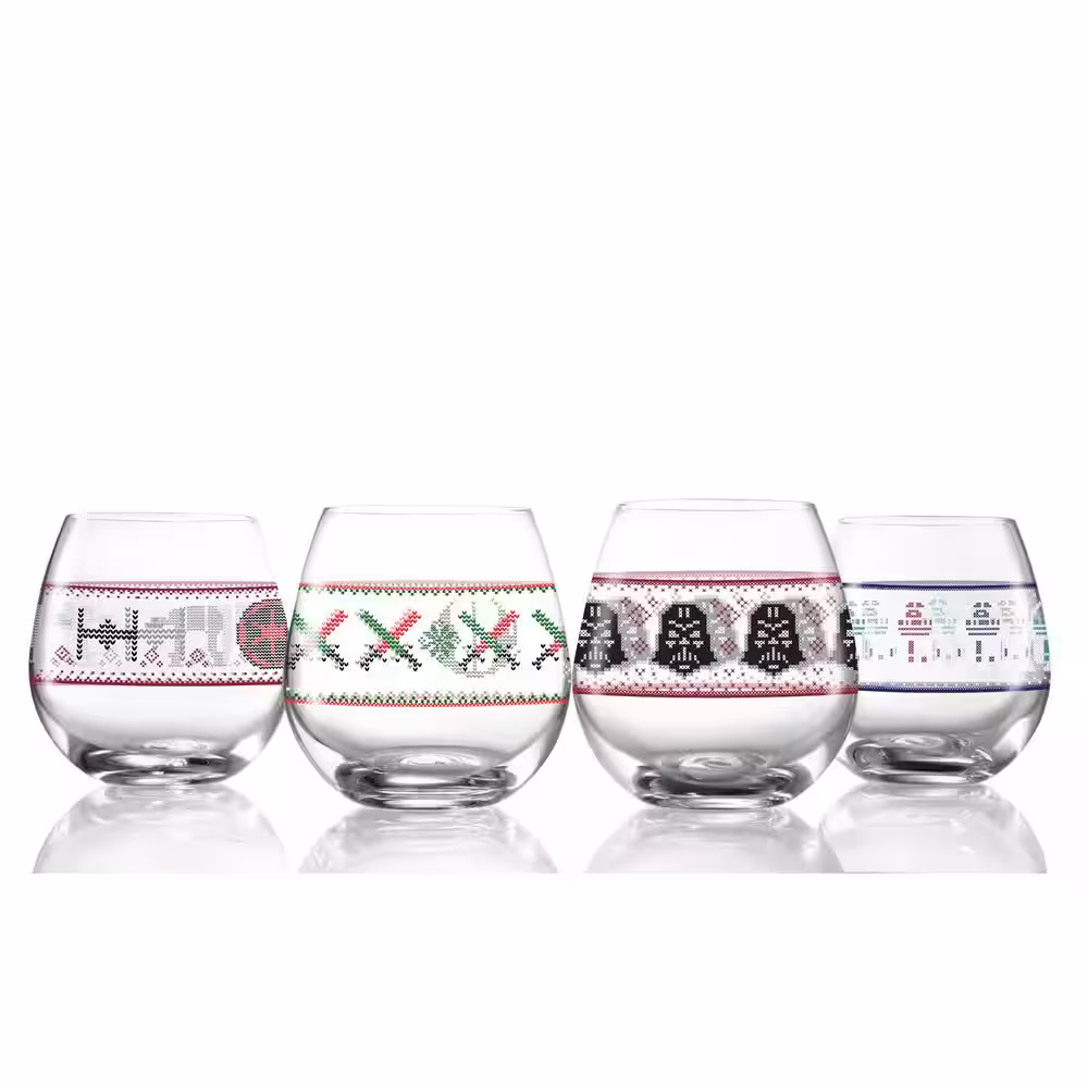 JoyJolt Star Wars Ugly Sweater Collection 15 oz. Stemless Drinking Glass (Set of 4)
