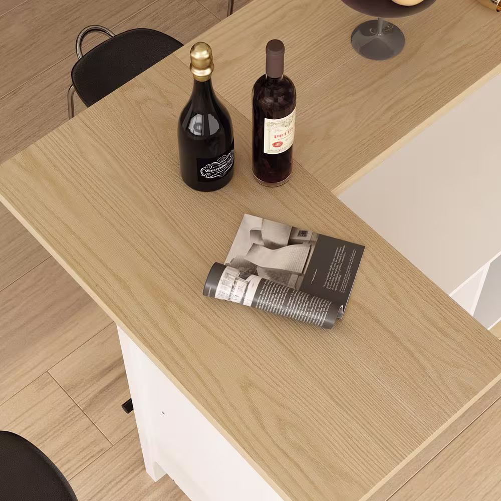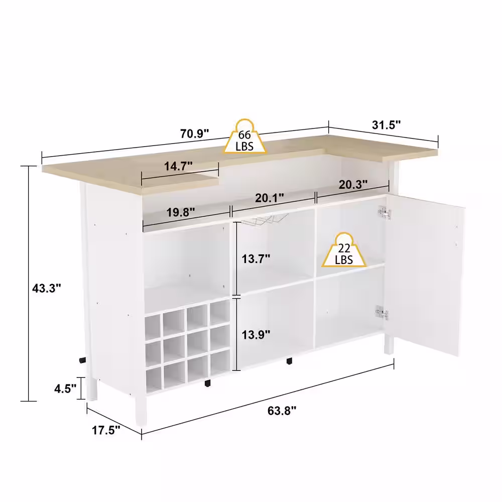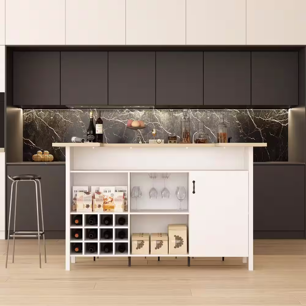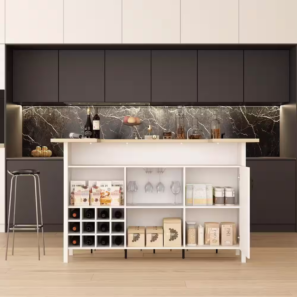 None 47 in. Cut-Off White Wood Buffet Bar Cabinet with Wine Rack with Granite Pattern Countertop