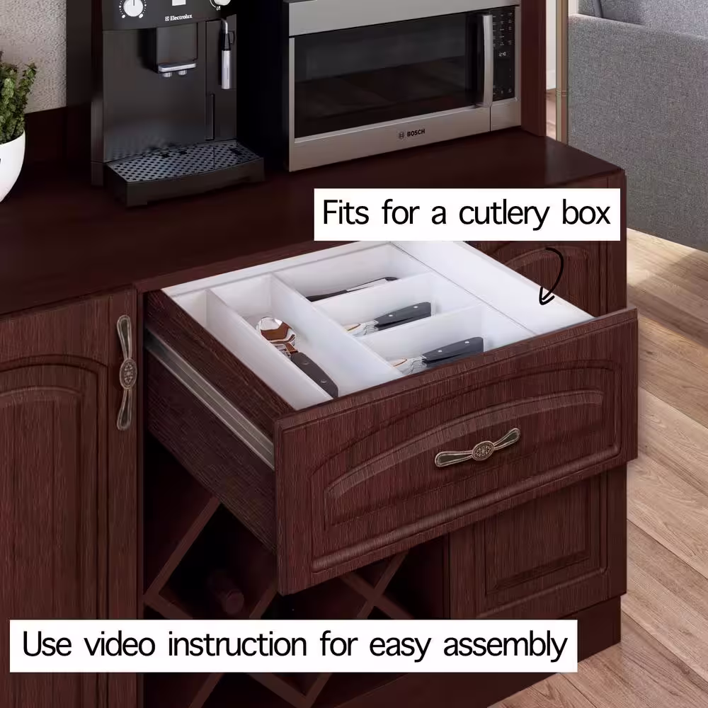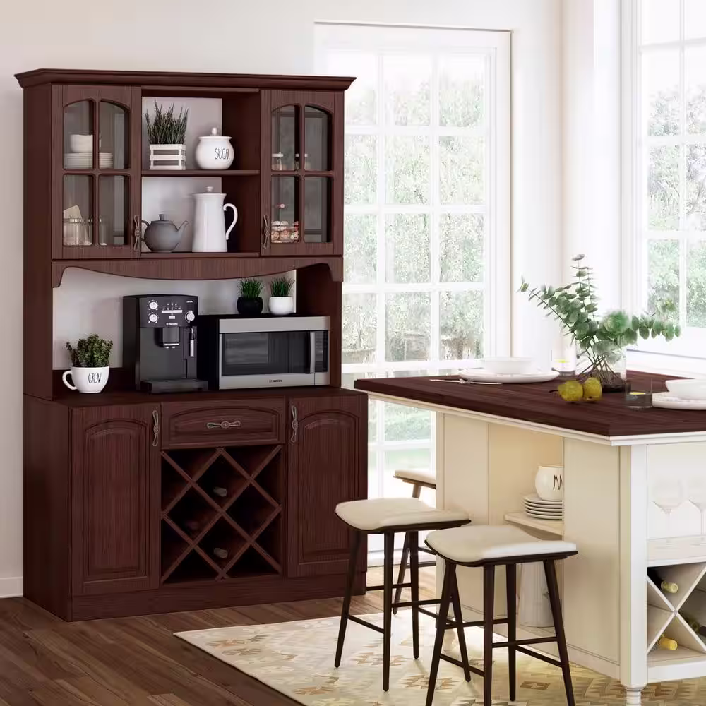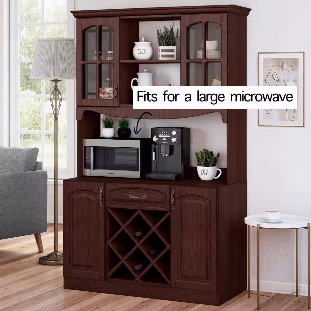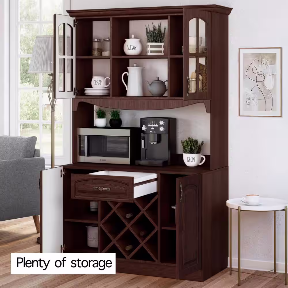 None Galiano 73 in. Espresso Pantry Buffet with Hutch with Wine Rack and Drawer