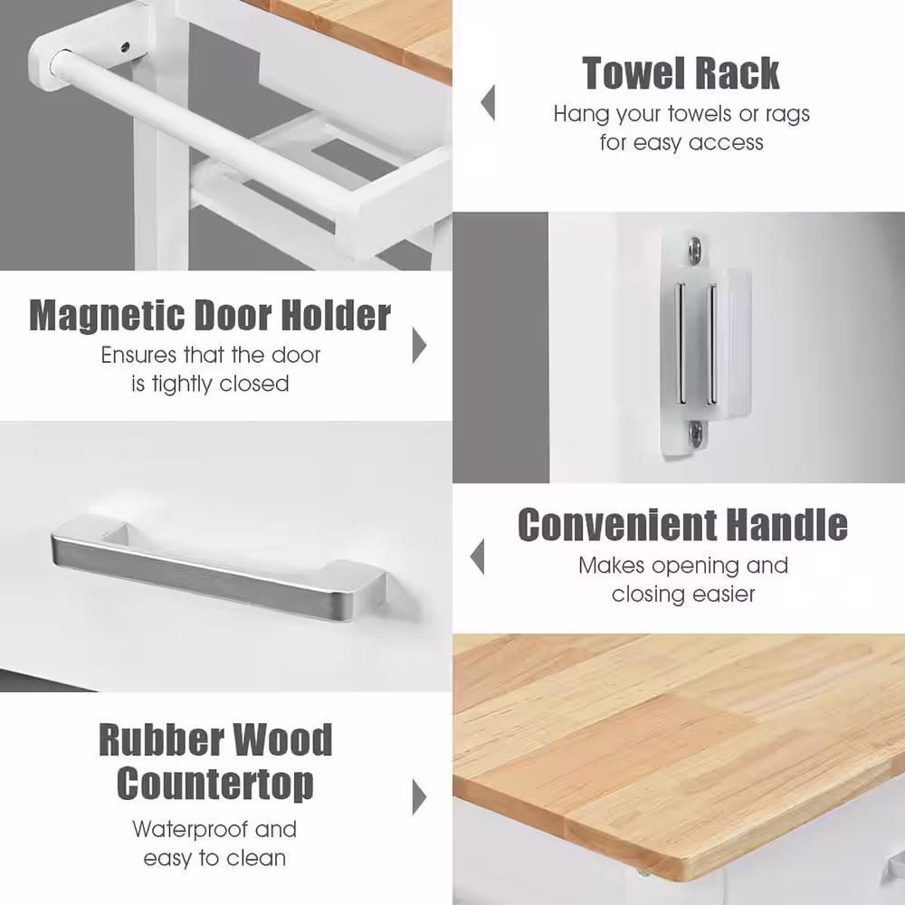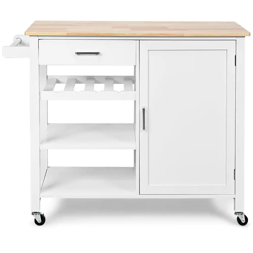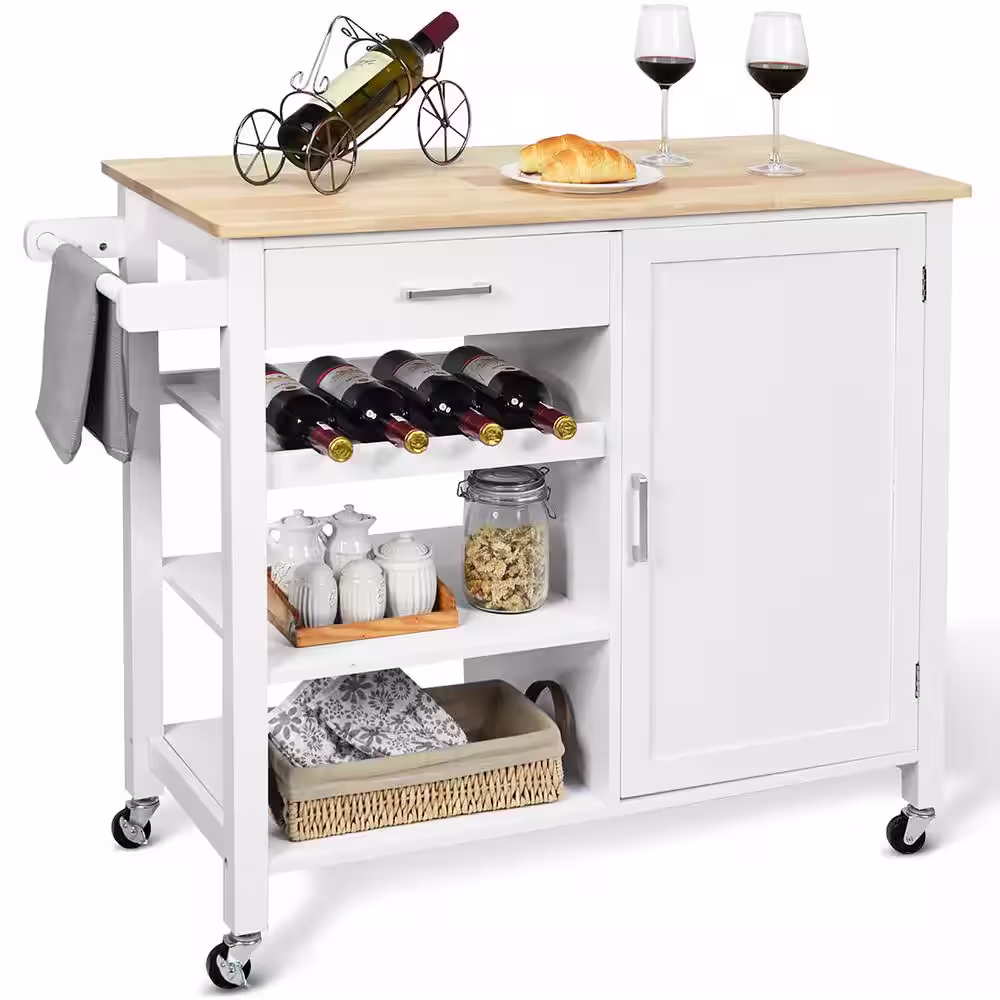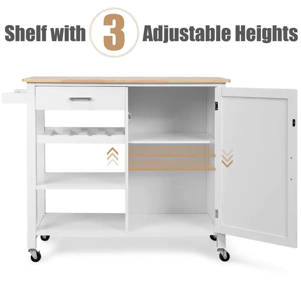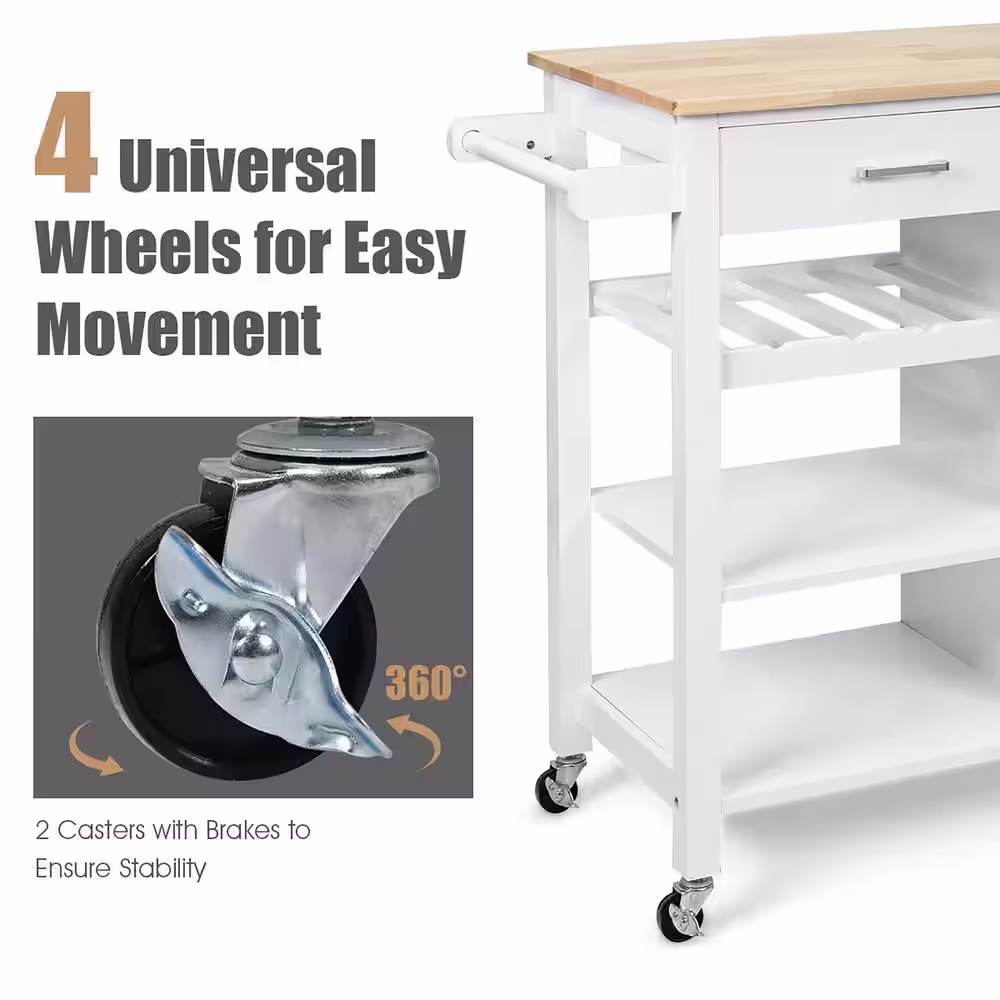 Costway 4-Tier White Wood Kitchen Island Trolley Cart Storage Cabinet with Wine Rack