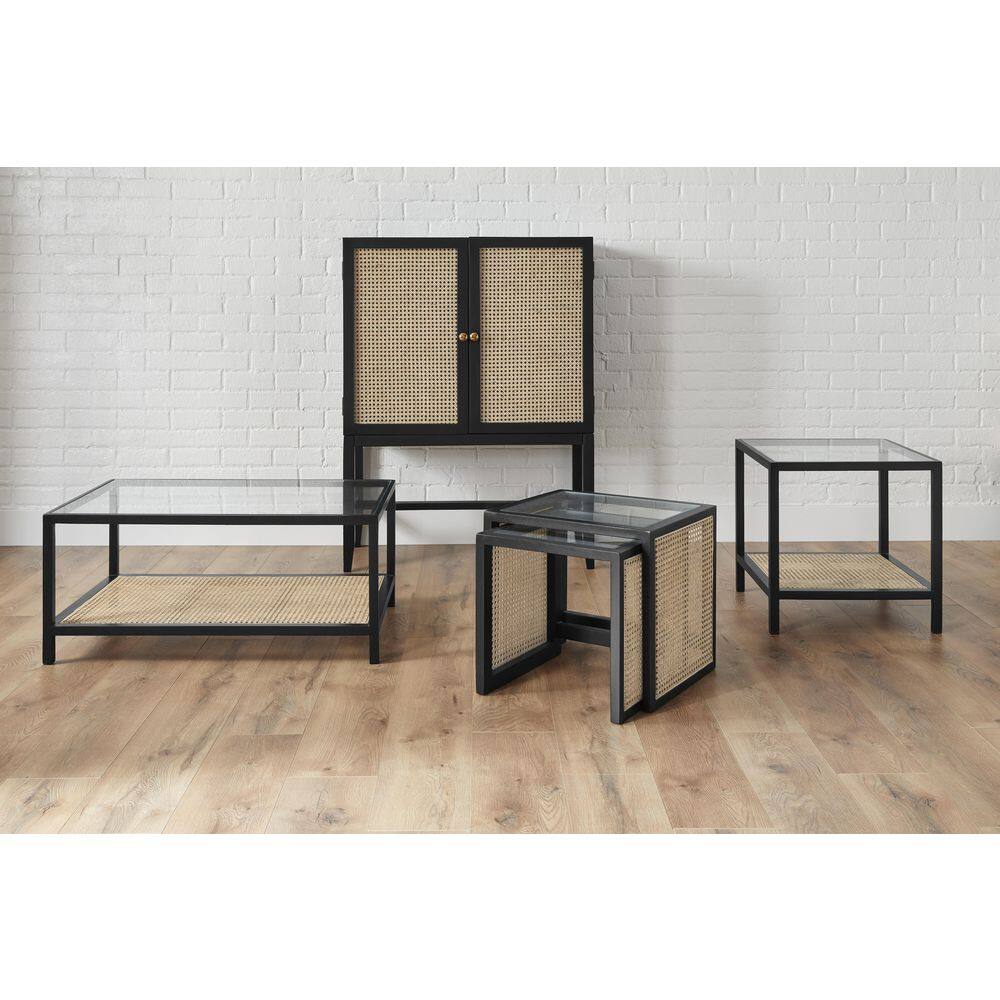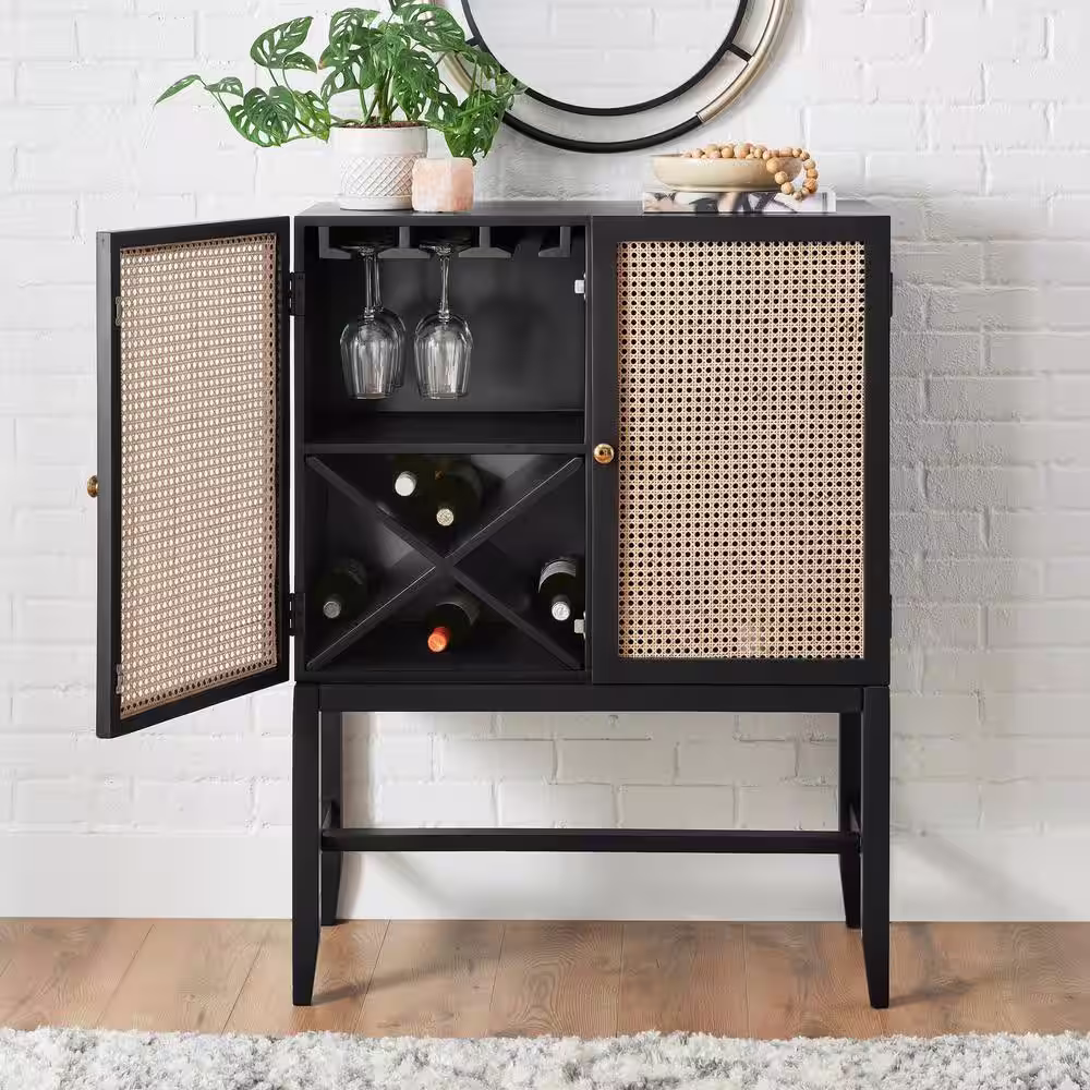 StyleWell Odell Cane Accent Bar Cabinet with Removable Wine Rack in Black/Rattan (36" W x 47.5" H)